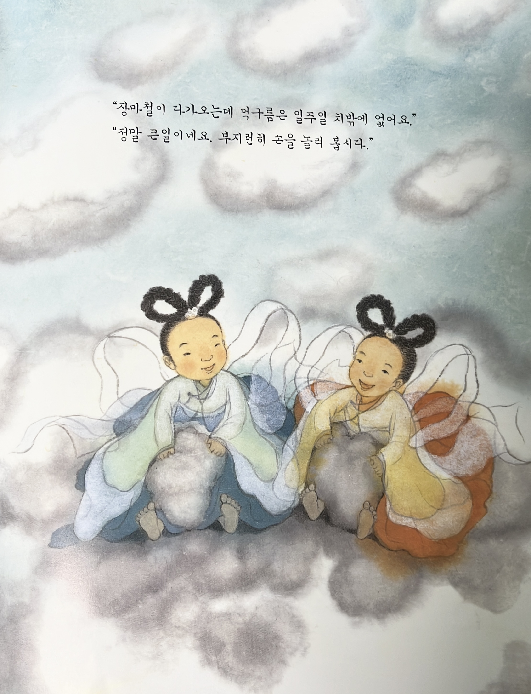 천둥, 번개가 치고 먹구름이 잔뜩 낀 날 아이들이 무서워 하는 대신 이 장난꾸러기 선녀를 떠올리기를 바라는 작가의 섬세한 마음이 엿보이는 책입니다.